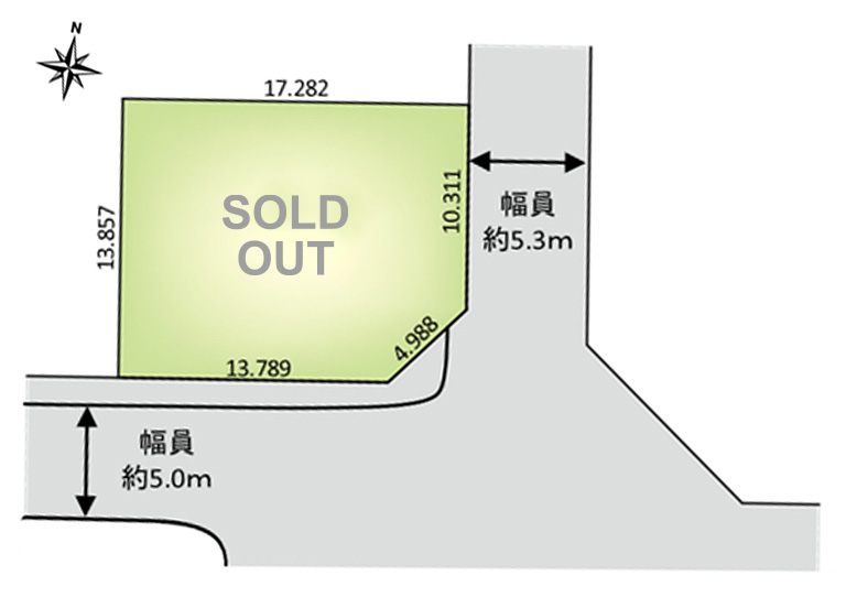 | 接道状況 | 東側:市道幅員約5.3m 南側:市道幅員約5.0m |